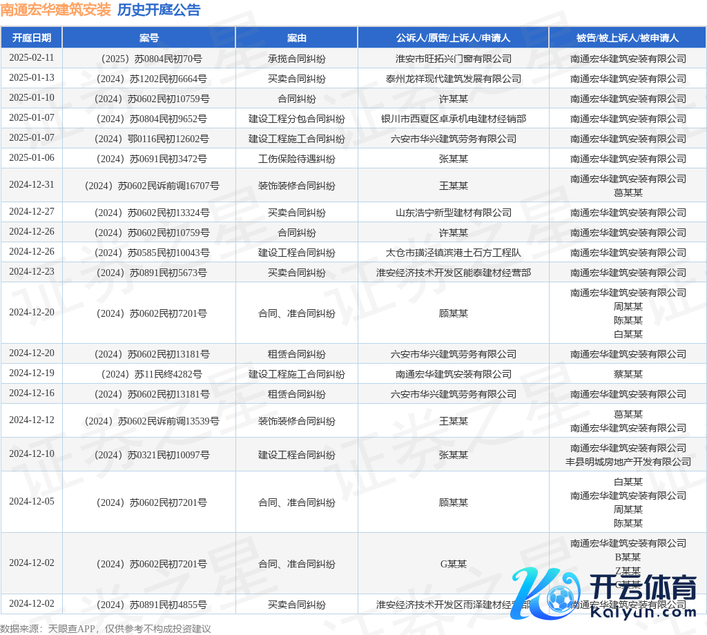 本站音讯开云官方,把柄天眼查APP裸露,近日公布了一则南通宏华建筑装配有限公司四肢被告/被上诉东说念主的开庭公告,详备实践如下: