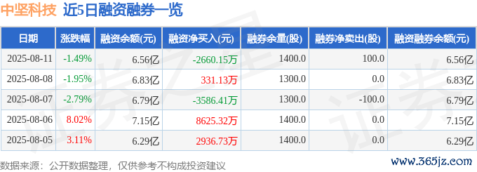 中坚科技融资融券信息深刻,融资方面,当日融资买入4122.6万元,融资偿还6782.76万元,融资净偿还2660.15万元。融券方面,融券卖出100.0股,融券偿还0.0股,融券余量1400.0股,融券余额13.46万元。融资融券余额6.56亿元。