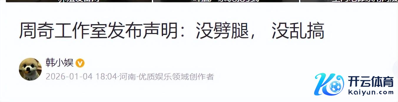 周奇责任室发布声明:没劈叉, 没乱搞-韩小娱