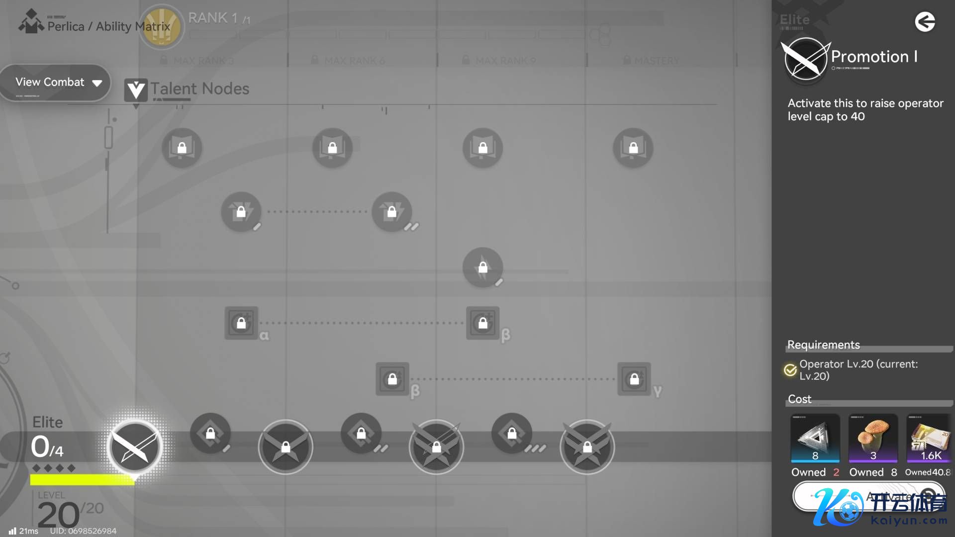 低级作战记载提供 200 警戒值。 中级作战记载提供 1,000 警戒值。 奈何晋升你的干员 (20级)