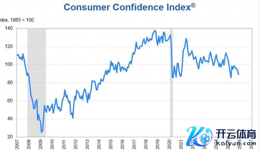 宇宙大型企业究诘会首席经济学家达娜·彼得森暗示,尽管11月的数据因联邦政府“停摆”戒指而被进取修正,12月阔绰者信心再次下滑并仍是远低于本年1月的峰值。阔绰者信心指数5个要素指数中有4个出现着落,另一个弘扬昭着疲弱。